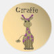 Une girafe mignonne avec un corps brun clair et des taches violettes. Une jolie expression sur son visage. Un arrière - plan caramel ombragé. Le mot "girafe" peut être changé à votre gré.