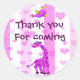 Sticker Rond Giraffe rose anniversaire merci