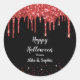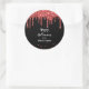 La conception d'autocollant rond Halloween présente un superbe glitter de sang rouge qui goutte sur un fond noir ! Le glitter rouge et les étincelles encadrent la moitié inférieure de l'autocollant. Personnalisez le texte avec votre propre message Halloween et changez le style de police pour convenir. Le glitter n'est pas un effet "réel" mais un effet imprimé.