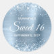 Créez votre propre autocollant Sweet 16 cercle pour votre fille. Vous pouvez customiser le libellé de calligraphie "Sweet 16" ou le style de police. L'arrière - plan de l'art numérique présente une parties scintillant bleu clair et un papier satiné à l'ombre. Fille 16e anniversaire préférez les autocollants ou les scellés d'enveloppe pour sa journée spéciale.