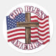 Sticker Rond God Bless American with Usa Flag & Cross