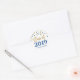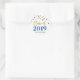 Classe de nom personnalisé de 2019 autocollants de graduation avec glamour bleu foncé et motif de confettis or avec texte de style lettré bleu.