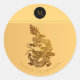 Sticker Rond Gold Chinese Dragon Papercut Monogramme Anniversai