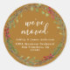 Announce your new home with this elegant Golden Brown “We’ve Moved” sticker. Designed with a hand-painted wreath of pine greenery and red berries, this rustic yet refined round label adds a festive touch to moving announcements or holiday mail. The warm golden brown background evokes cozy seasonal charm while keeping a polished, timeless look.