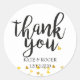 COEURS D'OR CONFETTI MERCI STICKER ROND. Doté d'un Merci de script branché et de confettis de coeurs dorés. Customisez avec votre nom et votre date. Conçu par Pure Piglet© à l'adresse www.zazzle.com/purepiglet*.