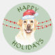 Sticker Rond Golden Labrador Retriever Santa Hat Joyeuses Fêtes