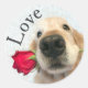 Sticker Rond Golden Retriever Avec Rose Rouge Valentine Love