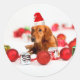 Sticker Rond Golden Retriever Chien W Red Santa Chapel Noël