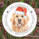 Ajoutez une touche finale à vos salutations de vacances avec cette adorable et drôle Père Noël chien Golden Retriever Pandemic l'étiquette d'adresse de retour de Noël. Chien d'or avec chapeau santa et masque facial. Cette étiquette d'adresse de retour de noël d'or de l'extracteur sera un favori parmi les amateurs et les amoureux de les chiens d'or. Visitez notre collection pour assortir les cartes de noël, la décoration de la maison et les cadeaux d'or. DROIT D'AUTEUR © 2020 Judy Burrows, Black Dog Art - Tous droits réservés. Golden Retriever Chien drôle Adresse de retour Classic Sticker rond