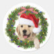 Sticker Rond Golden Retriever en couronne avec casquette de Noë