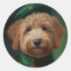Sticker Rond Goldendoodle Dog en tenue de la Saint Patrick