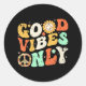 Sticker Rond GOOD VIBES SEULEMENT LA PAIX AMOUR 60s les années