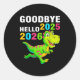 Sticker Rond Goodbye 2025 Hello 2026 T Rex Happy New Year 2026