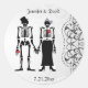 Gothique Skeleton Bride & Groom Couple Enregistrer les Stickers Étiquette Date. Squelettes vraiment mignons avec un marié et une mariée, enregistrer le texte de la date, et les cartes postales de nom et de date mariage de mariée et mariée. Complet avec tophat bowtie, voile et coeur! Grande et très unique dave cartes postales date pour votre Mariage Halloween, Goth ou Mariage de thème!
