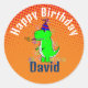 Caricature en colère t-rex dino ! Dessin dessiné original. Rawr ! Les autocollants d'anniversaire pour les enfants. Modifiez le nom pour personnaliser cet autocollant. Idéal pour l'emballage cadeau, la décoration de fête et l'étiquetage.