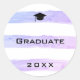 Sticker Rond Graduation Grad Casquette d'aquarelle violet rayé