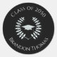 Ce design comprend un diplômé étiquette, un classique moderne classique élégant sceau, un classique classique classique mortier casquette, un classique lauréat feuilles, une classe de nom customisé sur mesure, les couleurs de l'école le thème noir de base, un diplôme grand étiquette invitation, un grand parti faveur traitement autocollant, une fête de remise de diplômes fêter, pour diplômé grand étiquettes stickers