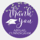 Confetti d'argent et MERCI manuscrit et le nom du diplômé en blanc contre une couleur arrière - plan violet changeable. Utilisez comme partie de remise de diplômes pour les autocollants ou merci les sceaux sur les enveloppes de papeterie. Contactez le concepteur si vous souhaitez que ce design soit modifié ou sur un autre produit.