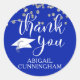 Confetti d'argent et MERCI manuscrit et le nom du diplômé en blanc contre une couleur arrière - plan bleue royale changeante. Utilisez comme partie de remise de diplômes pour les autocollants ou merci les sceaux sur les enveloppes de papeterie. Contactez le concepteur si vous souhaitez que ce design soit modifié ou sur un autre produit.