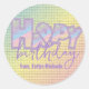 Préparez-vous à ajouter du flair personnel à vos célébrations d'anniversaire avec ce design d'autocollant personnalisé et cool unique! Les tons vifs pastel arc-en-ciel du texte "HAPPY" de style graffiti pop contre un arrière - plan en mosaïque, créant un effet visuellement étonnant. Entièrement personnalisable, vous pouvez ajouter votre propre nom et le mot "ANNIVERSAIRE" en faisant un ajout unique et spécial à votre journée spéciale.