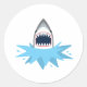 Caricature mignonne d'un grand requin blanc qui saute des vagues avec ses dents de mâchoires large ouverte.