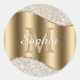 Sticker Rond Grand Monogramme Doré, Nom en Script Blanc, Diaman