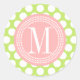 Sticker Rond Grand Pois vert et rose clair Monogramme