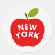 Grande pomme, New York City design autocollant rond avec la pomme rouge et la feuille.