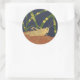 Sticker Rond Grasshopper en Grass vert sur Arrière - plan bleu