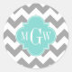 Gray and White Chevron ZigZag Pattern, Aqua Turquoise Quatrefoil 3 Initial Monogram Customize this with a three initial monogram or change the design to add your name or other text. Donc vous pouvez changer la police, adjust font size and font color, move the text to align the monogram letters, etc. Please note that this a numally created graphic design that's transferred to the underlying product. The design itself doesn't contain actual ribbon, labels, metals, embossing, etc. If you would like this design / label in other colors, just drop us an email. 2013 ©FantabulousPatterns All rights reserved