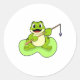 Sticker Rond Grenouille à la pêche avec canne à pêche