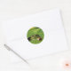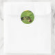 Cet autocollant présente une grenouille verte qui s'approche du photographe sous ses caleçons. Il vient d'arrêter de pleuvoir. Le soleil se réfléchit sur les gouttelettes d'eau. La taille de quelques feuilles tombés démontre à quel point ce petit gars est petit.