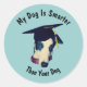 Mon chien est plus intelligent que votre chien avec un beau chien gris et noir vêtu d'une casquette de remise de diplômes drôle d'autocollant. Cliquez sur Personnaliser pour modifier la taille, le style et la couleur de la police. Cette image est disponible sur de nombreux produits dans mon magasin. Visitez Smilin' Eyes Treasures pour plus de cartes et cadeaux de fleurs, d'animaux et de nature.