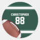 Un design de style jersey sport cool en vert avec rayures blanches et texte personnalisable en blanc pour leur nom et leur numéro. Un football fait également partie du design. Idéal pour le footballeur, ventilateur en grille ou entraîneur de football. Fabriqué en partie à partir de graphisme sous licence et © Graphics Factory.com D'autres combinaisons de couleurs sont disponibles dans notre magasin pour vos propres couleurs d'équipe et nous accueillons des demandes personnalisées, contactez-nous par l'intermédiaire de notre boutique GiftsBonanza avant d'acheter et nous serons heureux de vous aider.