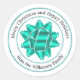 Cet élégant autocollant personnalisé étiquette dispose d'un échantillon d'un arc cadeau turquoise géant au centre. Deux cadres de parties scintillant en diamant turquoise en faux rond bordent l'arc. Un exemple de voeux de Noël joyeux est imprimé en haut avec un nom de famille en bas. Vous pouvez personnaliser l'autocollant pour inclure votre propre nom de famille ou tout autre texte personnalisé.