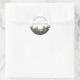 Les autocollants rustiques chic pour votre extérieur, aventure, ou entreprise orientée nature disposent d'une forêt de pins verts chasseurs avec trois champs de texte personnalisés.