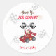 Grossissant deux Sticker Classic Round 2nd Anniversaire rapide est un design mignon avec voiture de course pour petits garçons.
