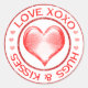Diffusez l'amour de manière unique avec cet autocollant moderne et à effet gringe de la Saint-Valentin qui comprend un centre coeur rouge entouré d'un texte circulaire 'Love XOXO Hugs and Kisses'.