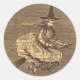Cet autocollant présente une lithographie de sorcière du 19e siècle assise sur un balai.
