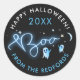 Ces autocollants ronds éffrayants présentent d'adorables fantômes bleus clairs, disant joyeusement "Boo" dans la calligraphie manuscrite mignonne. Le design est dressé contre un ciel étoilé profond, sombre et étoilé, avec de minuscules étoiles blanches ajoutant une lueur magique à l'arrière - plan. Idéal pour donner une touche charmante et fantaisiste aux cadeaux halloween, ces autocollants mêlent le plaisir éffrayant à une ambiance douce et ludique. Parfaits pour les fêtes, les sacs de bonbons ou les décorations saisonnières, ils apportent à chaque occasion un délicieux pop de l'esprit d'Halloween.