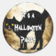 Sticker Rond HALLOWEEN Chat Noir Imprimé Faux Parchemin Brûlé