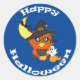 Ces autocollants d'Halloween à thème chouette ont de nombreux usages, y compris des invitations de fête de chasse au phoque, comme des faveurs à la fête d'Halloween de votre enfant, ou juste du plaisir pour les enfants! Elles sont ornées d'une chouette orange vif, habillée d'un casquette sorcier et perchée sur un balai devant une lune jaune croissant et une chauve-souris noire. D'un côté se trouve un minuscule fantôme blanc, et une araignée est suspendue au casquette du hibou. Le blanc arrondi au-dessus et au-dessous de l'image du hibou dit "Happy Halloween". L'image et le texte sont placés sur un arrière - plan de nuit bleu foncé. *Merci à Real Deal Clipart pour le clipart utilisé pour créer ce design.