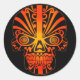 Autocollants crâne d'Halloween orange et noir pour tous vos besoins éffrayants d'Halloween. Les autocollants d'Halloween font de grandes astuces ou des cadeaux, et sont amusants pour décorer tous vos projets d'Halloween. <br>Voir tous nos autocollants Halloween dans notre boutique au ()! <a href="http://www.zazzle.com/stickermad/products?dp=0&cg=196880420703973077</a>Copyright Scarribaby Design, une marque déposée, et soutenu par la garantie Zazzle.