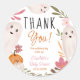 Express votre gratitude avec cet adorable autocollant de baby shower "Merci" de fantôme d'Halloween ! Parfait pour ajouter une touche douce à vos faveurs de fête, cet autocollant mignon présente un design délicieux de fantômes amicaux et souriants entourés de charmants éléments automnaux comme les citrouilles et les fleurs. Les couleurs pastel douces et les illustrations fantaisistes en font un baby shower parfait pour un séjour plus mignon que éffrayant. Idéal pour sceller des sacs de faveur, décorer des enveloppes ou ajouter une touche spéciale aux cartes de remerciement, cet autocollant combine charme, personnalisation et ambiance festive dans un design enchanteur.