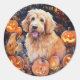 Sticker Rond Halloween Goldendoodle avec la peur Citrouille