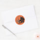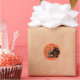 Les stickers Halloween amusants ont un arrière - plan tourbillon orange, une maison hantée avec un chat noir qui regarde la porte, un fantôme dans le beffroi et un autre qui sort du grenier. Il y a un vieil arbre éffrayant avec une lanterne suspendue à elle, des pierres tombales et des chauves-souris dans le ciel. Idéal pour sceller une carte d'Halloween ou une invitation à la fête, ou pour donner comme faveurs de fête.