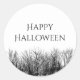 Sticker rond Halloween noir et blanc, avec bois gothique et design typographique. Avec des lettres personnalisables en noir et blanc, vous pouvez ajouter vos propres informations. Idéal pour ajouter une touche éffrayante à vos cartes d'automne, cadeaux et invitations.