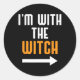 Sticker Rond Halloween Pour Les Hommes Je suis Avec La Sorcière