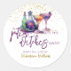 Un drôle violet 'potion par jour garde les sorcières loin' autocollant Halloween. Ce design ludique violet et vert présente des bouteilles de potion magique éffrayantes et deux verres à cocktails. Facile à customiser avec votre heureux message d'halloween.