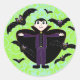 Ce mignon autocollant d'Halloween a un vampire habillé en violet et noir sur un arrière - plan texturé vert avec des chauves-souris volant autour de lui. Ajoute une touche festive à votre invitation et aux envois de cartes de voeux. Correspond à notre Vampire avec Bats Halloween invitation donc consultez notre boutique pour plus d'une sélection. Joyeux Halloween !